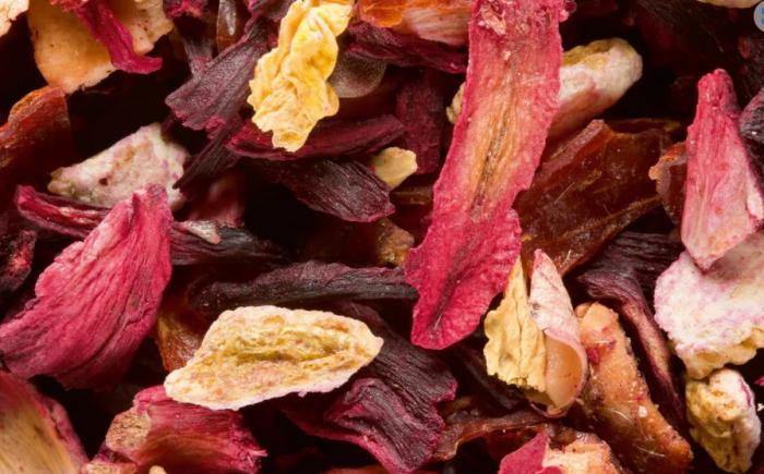 Mélange de fleurs d’hibiscus, de morceaux de pomme, de cynorrhodon et d’écorces d’orange aux délicieux parfums de pêche et d’abricot.