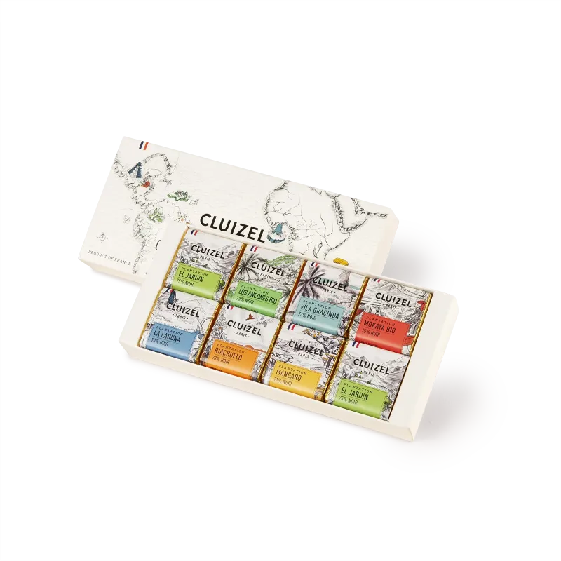 Ces carrés-dégustation de 5 g sont fabriqués à partir de crus de chocolats de grande qualité de divers jardins du monde.