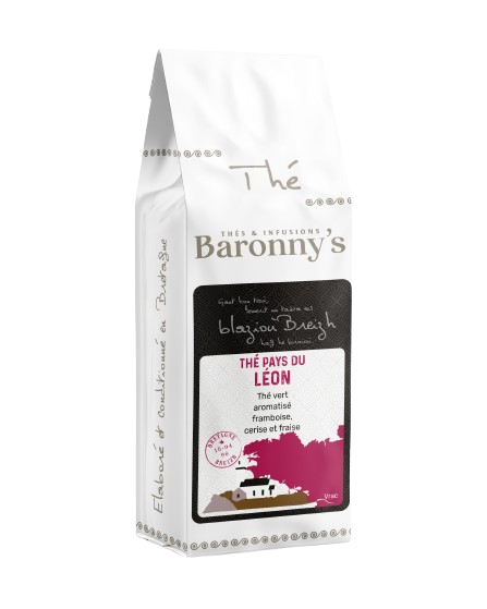 Thé vert de Chine parfumé à la framboise, hibiscus, morceaux de fraise et cerises griottes, arômes naturels.