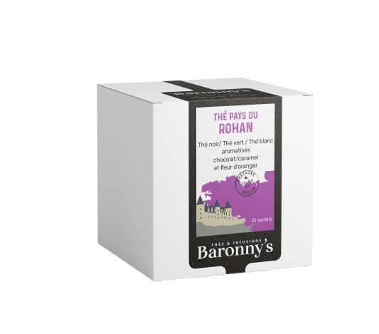 Thé noir et thé blanc de Chine parfumé au chocolat, caramel et fleur d’oranger et arôme naturel.