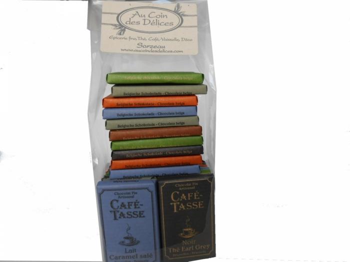 Assortiment de 21 mini tablettes de 9g qui raviront vos invités lors du café ou en gourmandise pendant la journée.