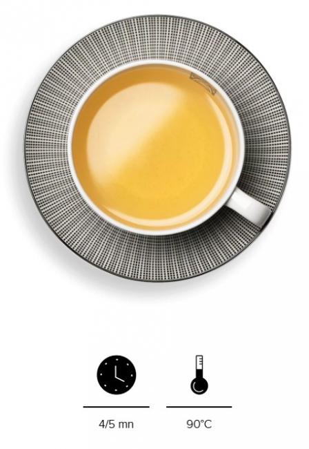 Originale et singulière, la belle alliance d’un thé noir du Sri Lanka à un thé vert et un thé vert au jasmin de Chine est la base de ce mélange tout en finesse. L’équilibre végétal de ces trois thés s’accorde merveilleusement à la note fruitée de la bergamote de Calabre et à celle ronde et gourmande de la vanille. En résulte un thé à la tasse harmonieuse et délicate qui invite à la sagesse et la sérénité