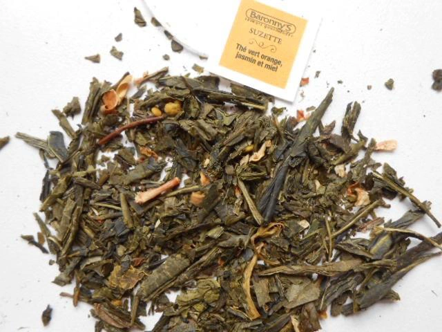 Thé vert Sencha, fleur d’oranger, fleurs de jasmin, arômes.