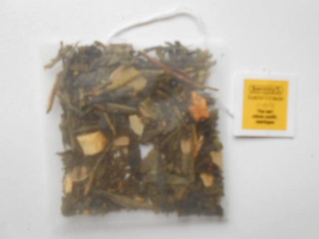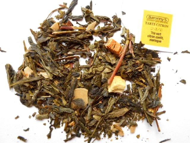 Thé vert Sencha, fleur d’oranger, zeste de citron, amande, caramel, réglisse et arômes.