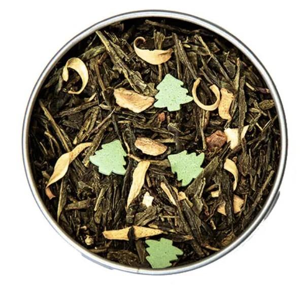 Thé vert aux parfums de Noël et parsemé de petits sapins de Noël.