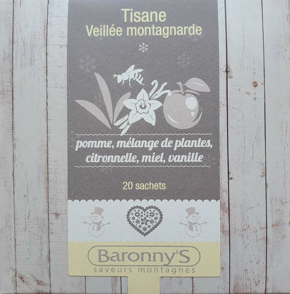 Pomme, fenouil, réglisse, citronnelle, zeste d’orange, cannelle, arôme naturel, camomille, anis, clou de girofle, cardamone, baie rose, pétales de rose, vanille.